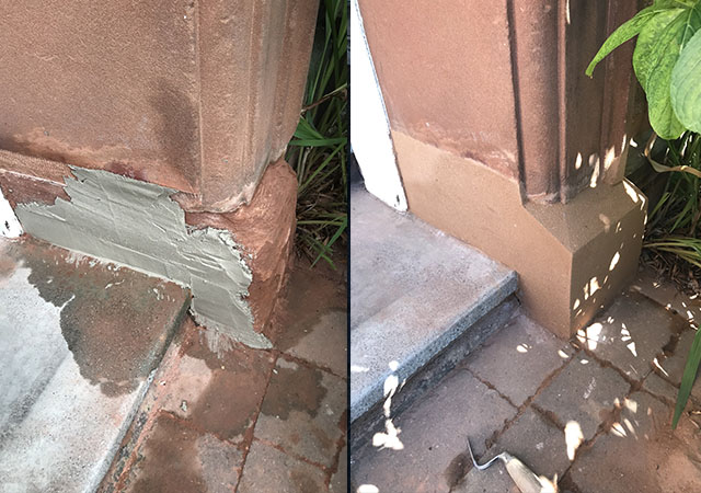 We begin by removing your existing defective stone mortar, brush area to ensure it is dust and debris free.