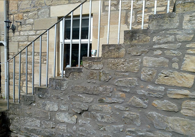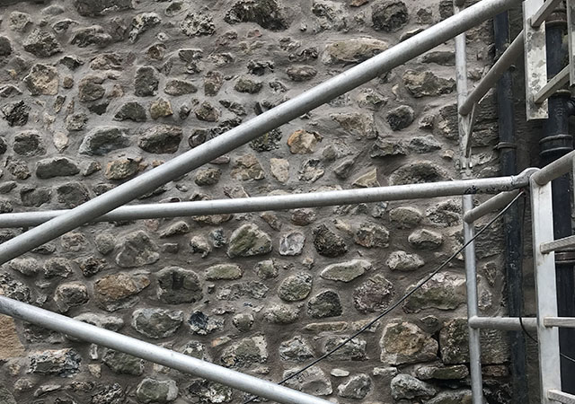 Apply the lime motar by hand using pointing keys. Leave the mortar to cure/dry. Then finished in a smooth or rustic finish of choice, to match the existing finish. The pointing in stonework is the mortar that sits between the pieces of stone and binds and holds the wall together. With the passing of time all stone buildings and walls will need repointing.